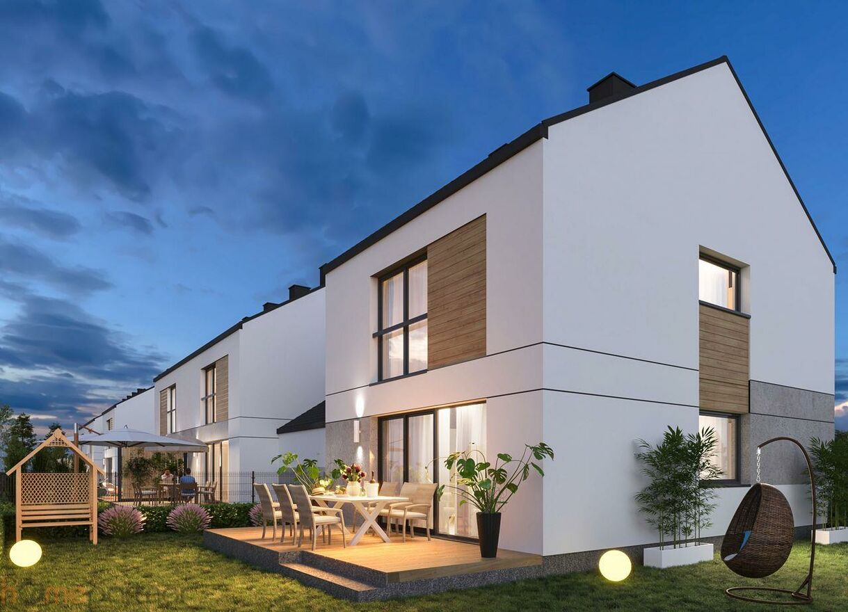 Informacje o domach:Powierzchnia: 119,55 m lub 95,16 m.Każdy segment posiada własny ogród oraz garaż, a także dodatkowe miejsce postojowe na zewnątrz.Na pierwszym piętrze brak skosów, co zapewnia pełną funkcjonalność i komfort użytkowania.To idealna propozycja dla osób ceniących nowoczesne technologie, ekologię oraz wygodę w cichej, zielonej okolicy.